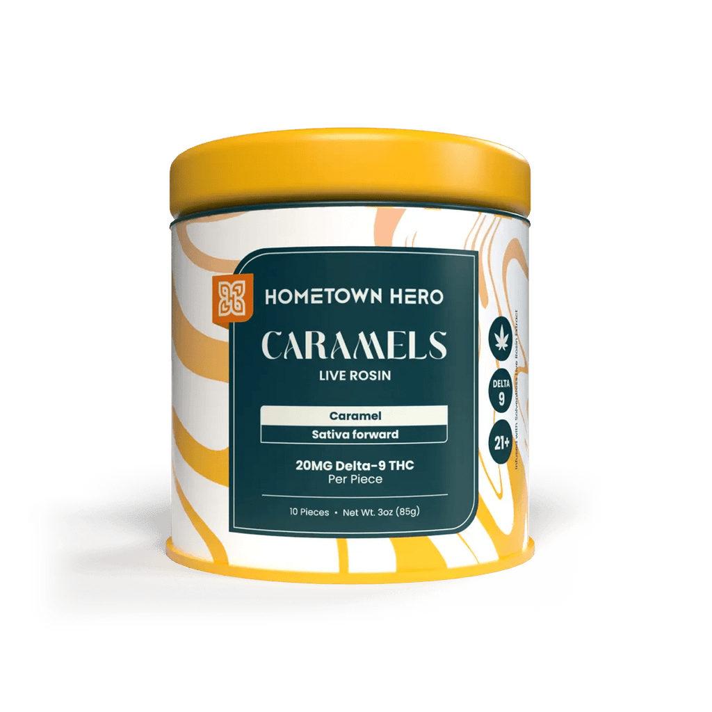 Enjoy the savory goodness of our soft, chewy caramels. Each piece has 20mg of THC from hemp, plus 2.5mg live rosin.