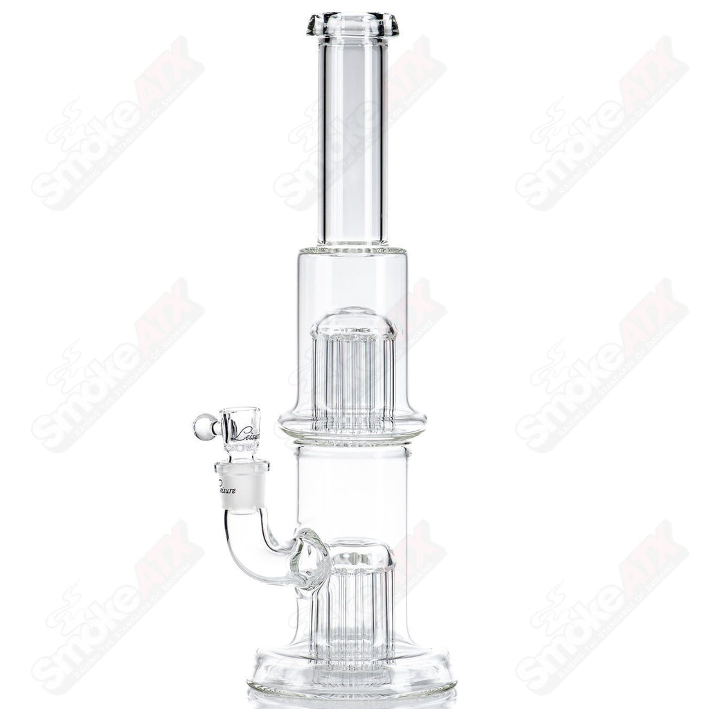 By 2007-2008, growing recognition from the glassblowing community led him to establish his brand, Leisure Glass, rather than just signing individual pieces. His signature designs include highly intricate tree percolators, with some featuring 54+ arms for maximum diffusion and function. His work ranges from incyclers to inline tubes with secondary tree percolator chambers, ensuring an ultra-smooth experience with every hit.