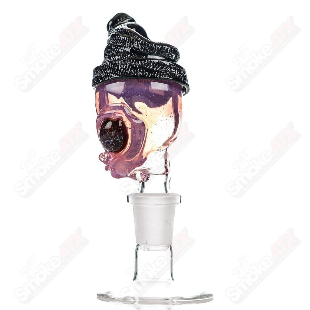 Initially crafting pipes and hitters for a start-up production company, Ghost transitioned into the realm of sculptural art. In 2003, he boldly ventured beyond production pipes, creating an iconic piece — an alien cradling a planet. This sculpture, seamlessly blending functionality with artistic expression, became a fixture in the pipe community, replicated far and wide.