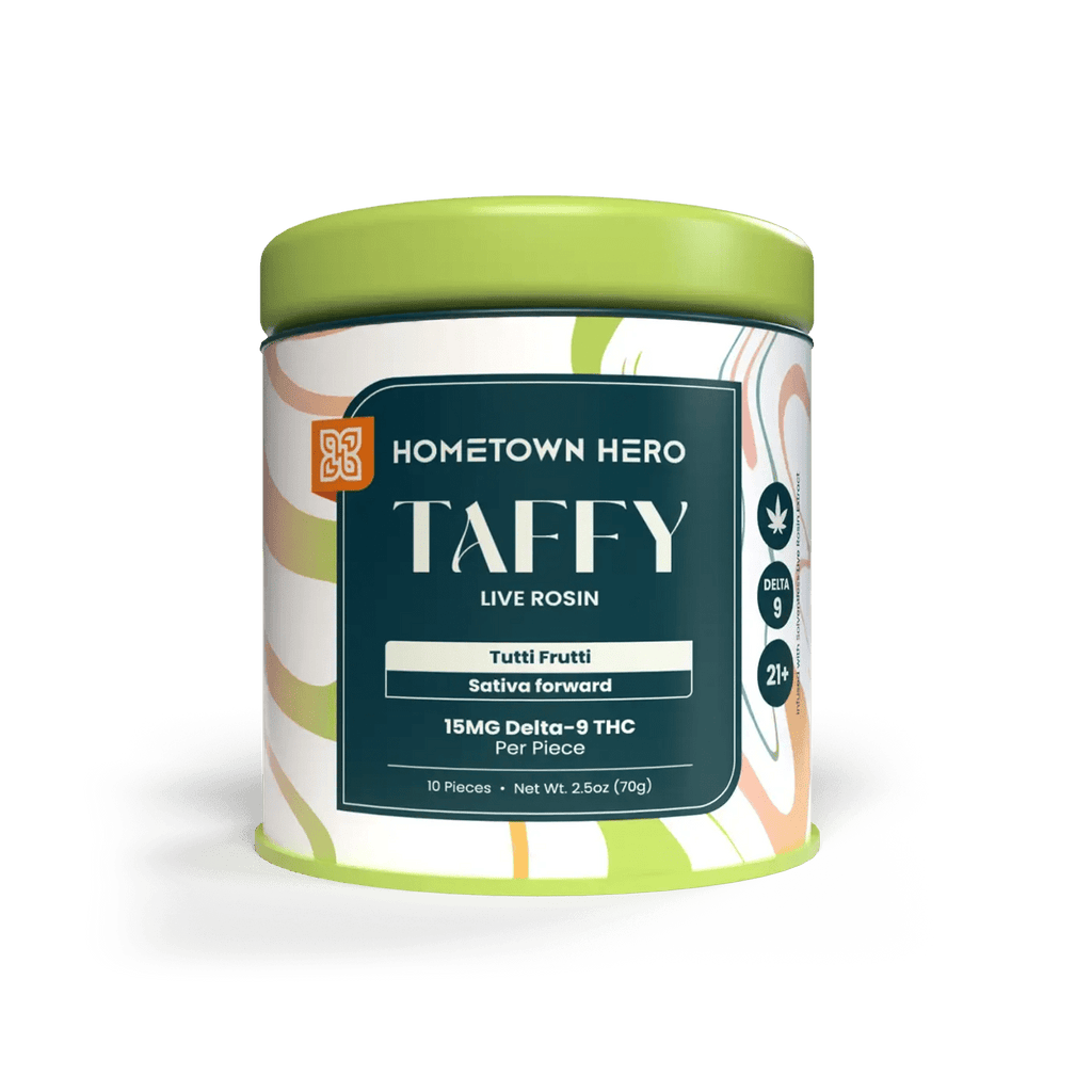 The fruity blend of candy flavors with a creamy finish in salt water taffy provides the taste of a weekend at the beach. But the feel? That's where the 15mg of hemp THC and sativa live rosin come in.