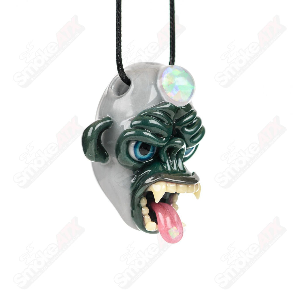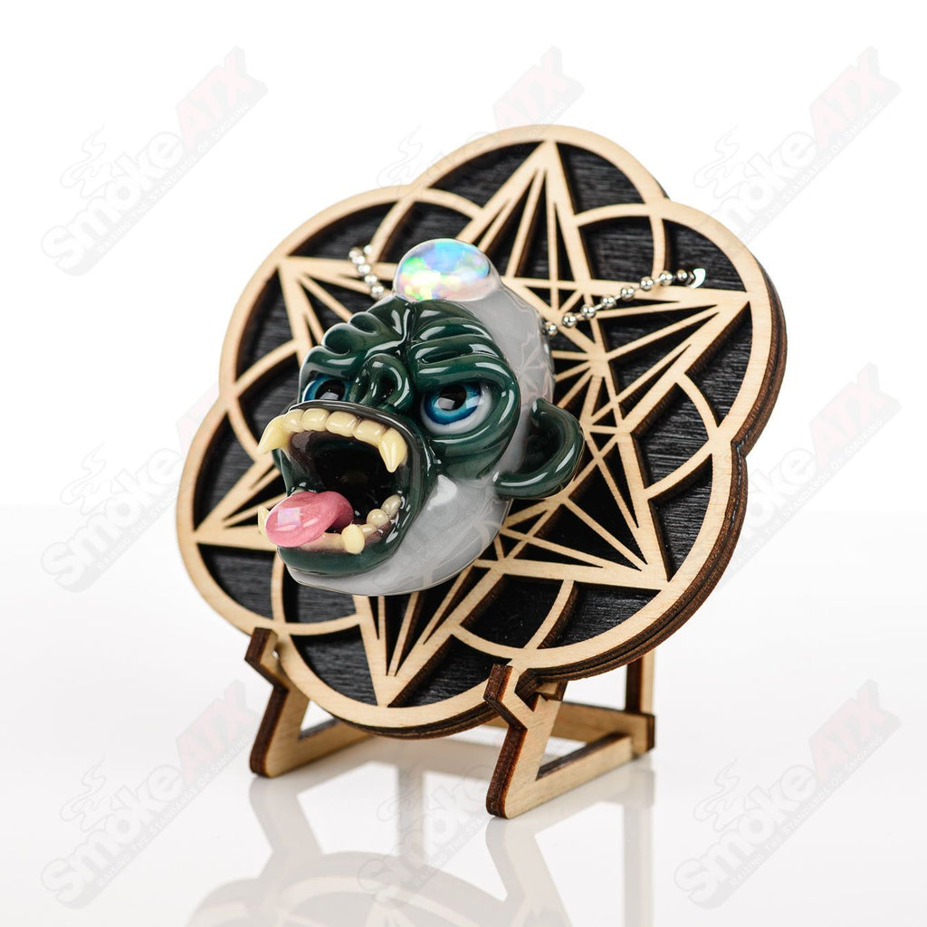 Introducing the striking "Killa Gorilla" pendant, a captivating work of art designed by the renowned artists Coyle & Firefly Glass. This exceptional pendant combines fierce aesthetics with stunning opal accents, resulting in a truly extraordinary piece.